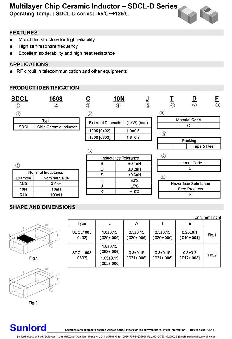 定制類(lèi)型:SDCL-D貼片陶瓷高頻電感
